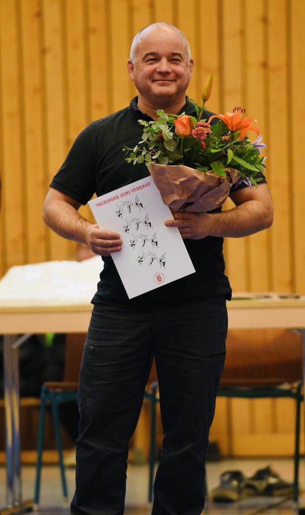 Den 5. Dan erhielt Tobias Tejkl, der seit Jahrzehnten zu den prägenden Persönlichkeiten des Thüringer Judos zählt. Als Trainer, Prüfer und Funktionär beim FSV 1950 Gotha hat er Generationen von Judoka auf und neben der Matte begleitet. Seine Trainingsarbeit ist geprägt von pädagogischem Feingefühl, technischer Präzision und tiefer Verbundenheit mit den Werten des Judo. Zahlreiche seiner Athletinnen und Athleten erreichten Erfolge bis hin zu Europameisterschaften und Deutschen Meisterschaften. Darüber hinaus engagierte sich Tobias Tejkl über viele Jahre in der Graduierungs- und Öffentlichkeitsarbeit des Verbandes und ist heute als Vizepräsident des Thüringer Judoverbandes aktiv. Sein Wirken ist ein herausragendes Beispiel für nachhaltiges, ehrenamtliches Engagement, das weit über den Verein hinauswirkt und den Verband inhaltlich wie menschlich bereichert.