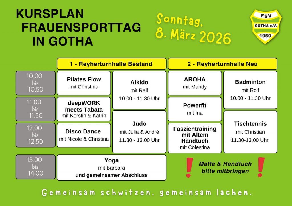 Nicht nur das Datum passte perfekt mit dem 8. März. Das sonnige Wetter, alle Trainerinnen und Trainer, das Helferteam sowie die knapp 90 Teilnehmerinnen mit ihrer Lust auf Bewegung sorgten für einen großartigen Frauensporttag. „Gemeinsam schwitzen, gemeinsam lachen.“ ist voll gelungen und jede Teilnehmerin konnte ihren Lieblingskurs wählen oder was Neues testen. Es hat viel Spaß gemacht, danke für den schönen Sonntag! (io)